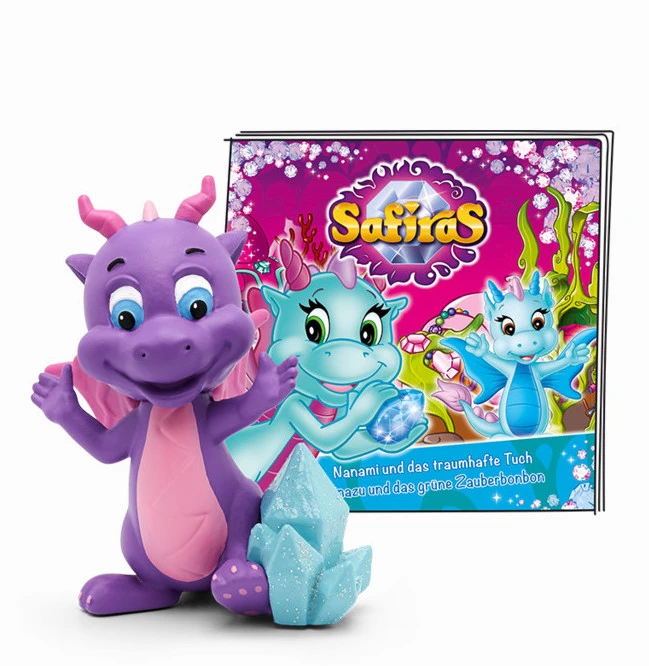 Im magischen Land Tarakona leben die Elementdrachen Safiras. Hier gibt es Erddrachen, Wasserdrachen, Feuerdrachen und Luftdrachen – und jeder Drache besitzt einen Funkelstein, der ihm magische Kräfte verleiht. Im Wasserreich leben Nanami und Ninazu: Ihre Geschichten kannst du auf diesem Tonie hören.
