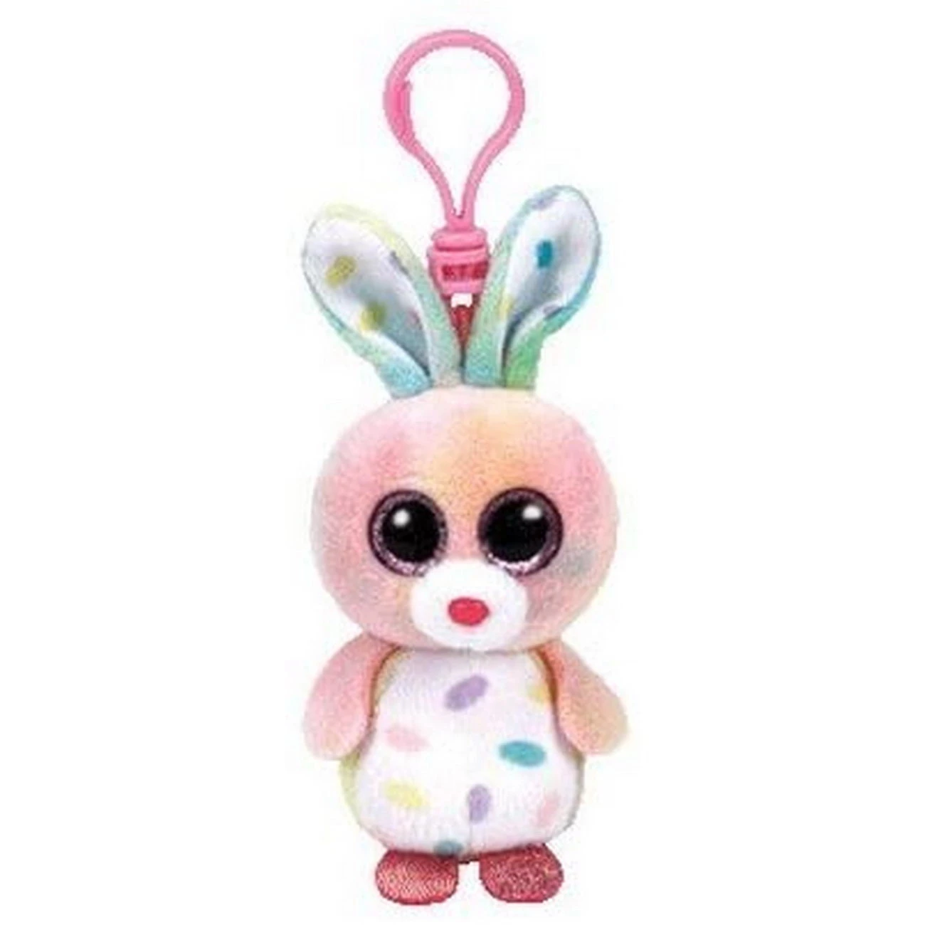 Häschen Bubby ist ein niedlicher kleiner bunter Plüsch Anhänger mit Clip.